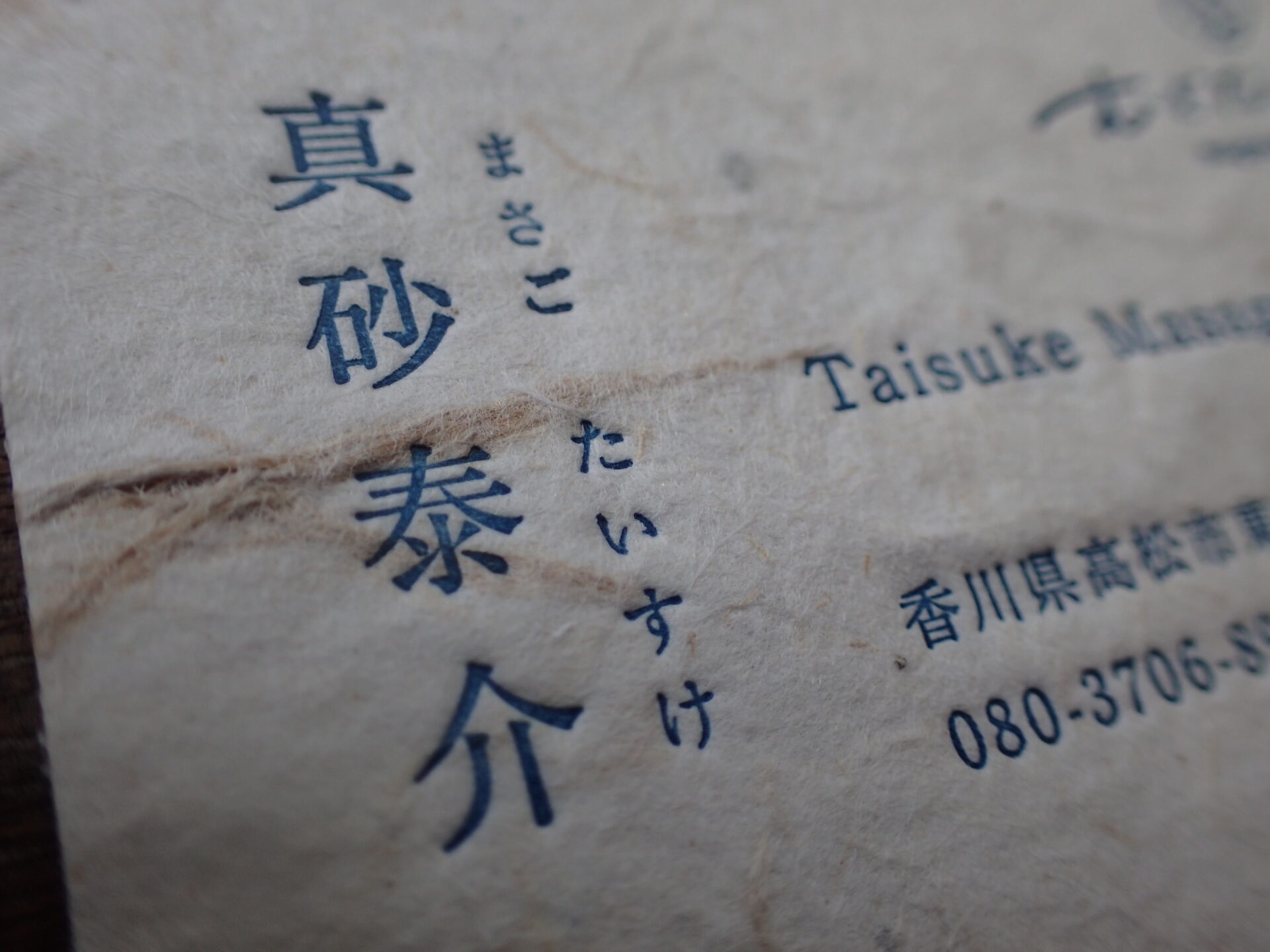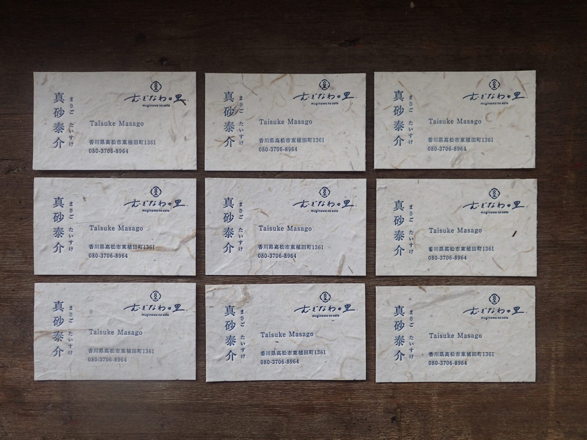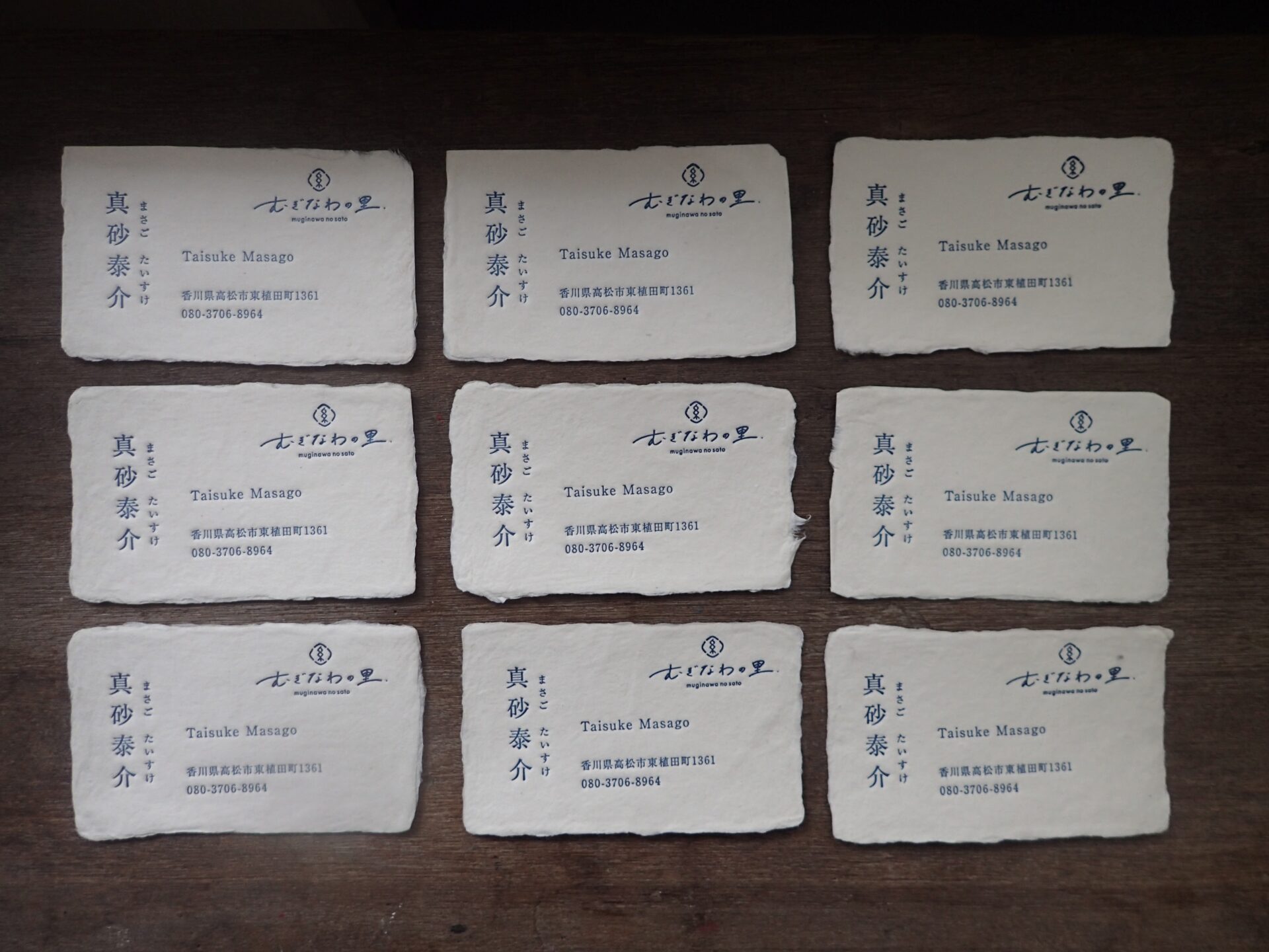 名刺印刷(活版印刷/紙:大洲和紙 耳付き・繊維入り/片面1色:藍 )