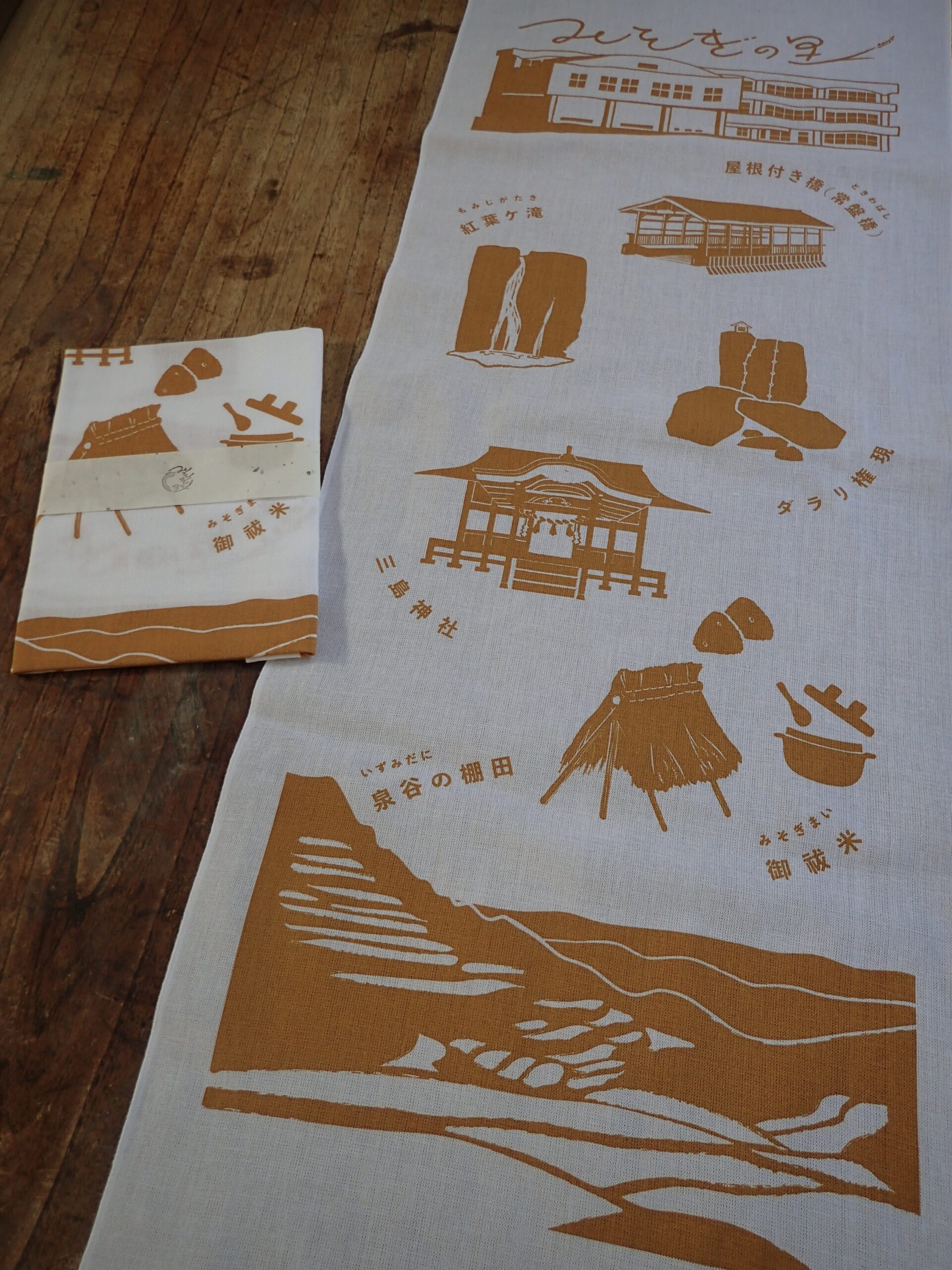 愛媛県内子町 御祓(みそぎ)地区の観光名所を図案化したてぬぐいをデザインさせていただきました。