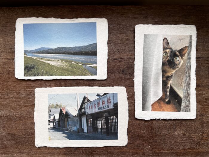 ハガキは、内子町天神産紙工場さんで作られている手漉きの大洲和紙を使用しています。