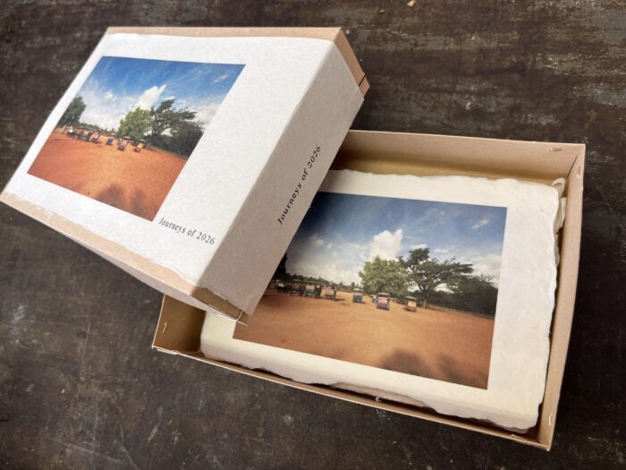 スマホなどで撮影した写真を、店頭(その場)で和紙ハガキ(耳付き)に印刷いたします。